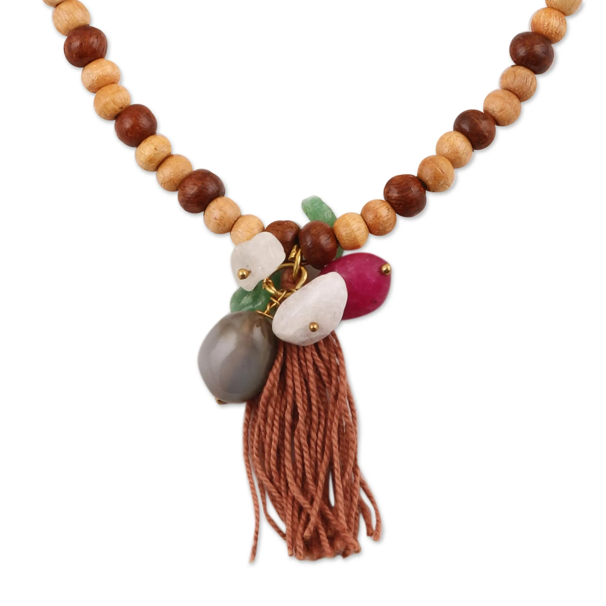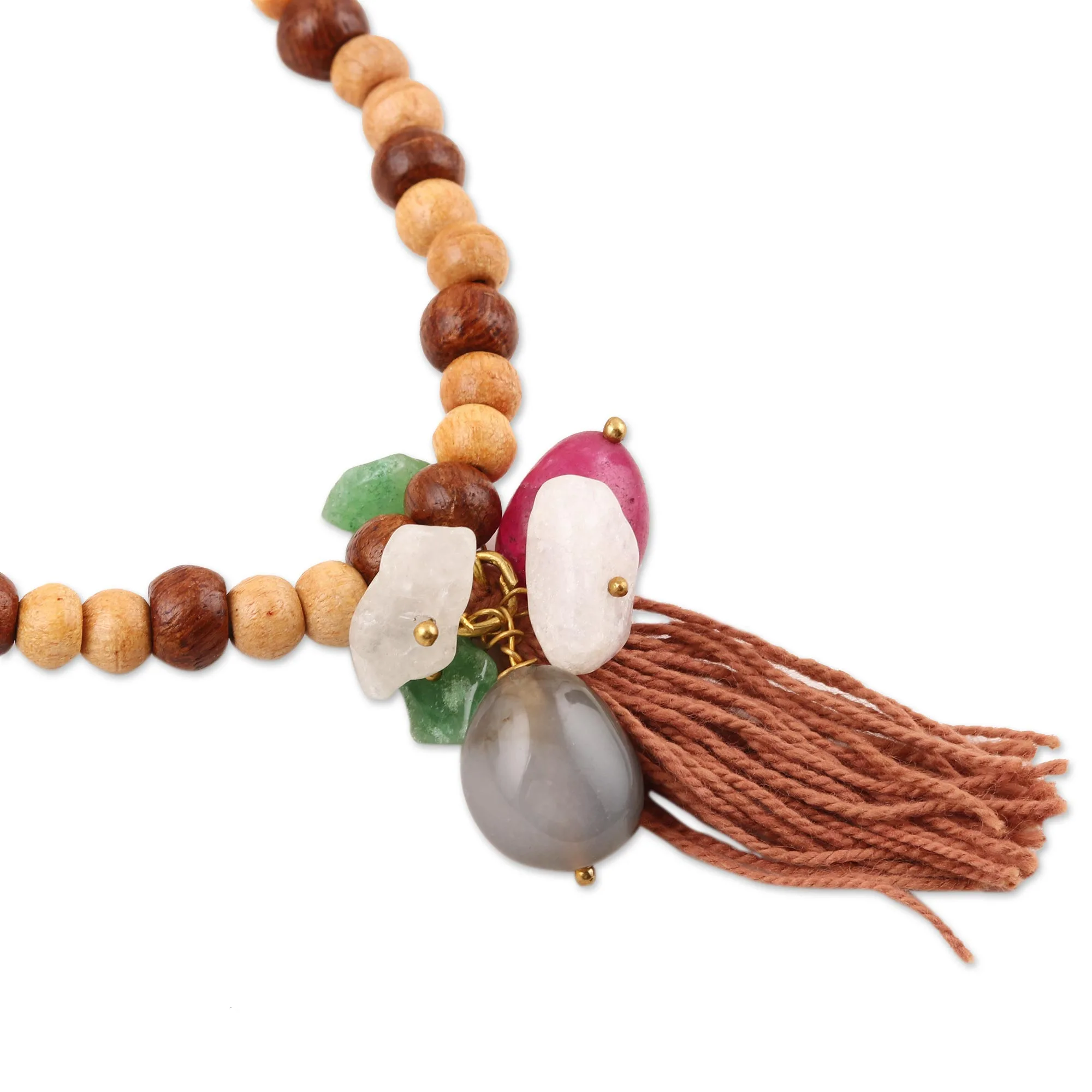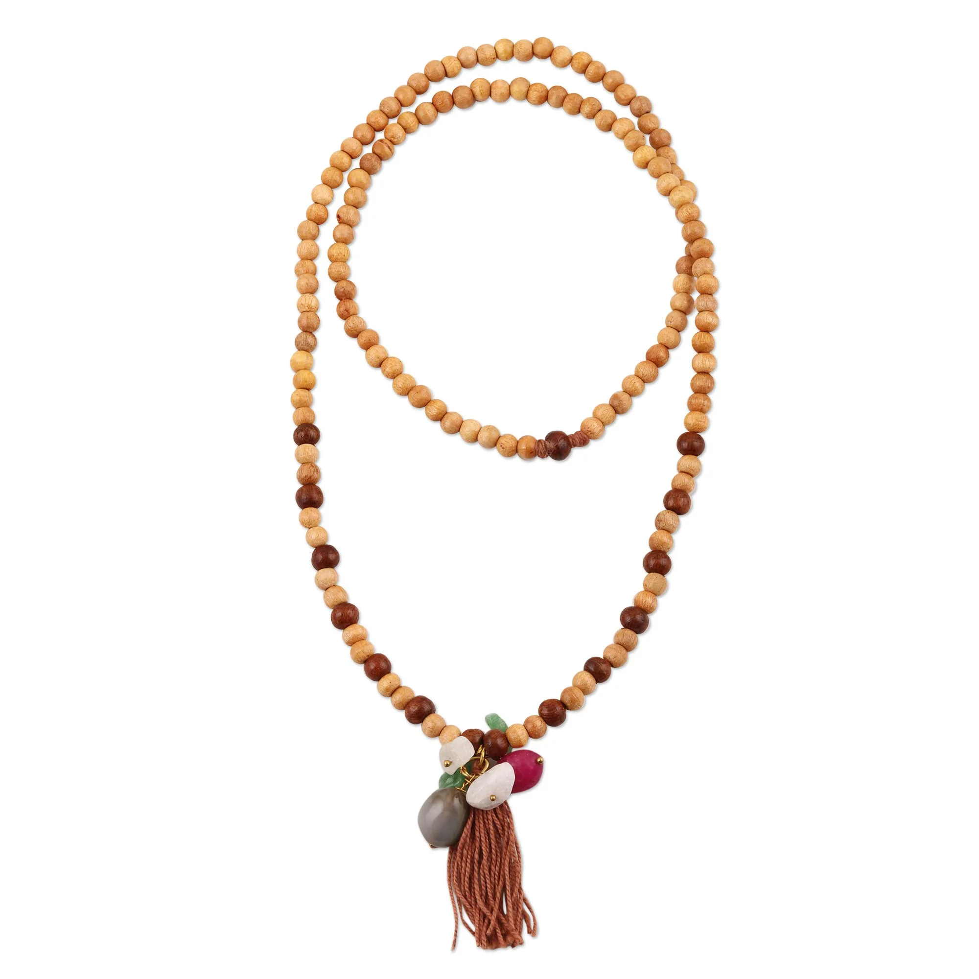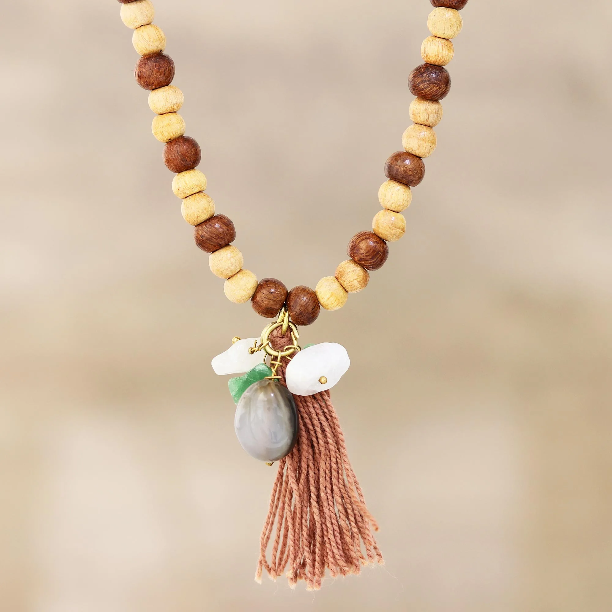 Bohemian Movement and Hand-Tied Details Completing the design is a generous, hand-tied tassel in a soft clay-colored fiber. The fine strands of the tassel offer a kinetic quality, moving with the wearer and adding a soft, textural finish to the more rigid wood and stone components. Whether you use it as a tool for mindfulness or as a soulful addition to your personal style, the Earth-Spirit Mala is a timeless tribute to the craftsmanship of the natural world.